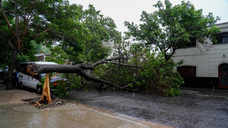De acuerdo al primer registro municipal, antes de las 8 –y con 60 milímetros de agua y un pico de ráfagas de 69 km/h a las 6.33– ya se contaban 31 árboles y ramas caídas, seis columnas y cables desprendidos, dos anegamientos y tres hundimientos.