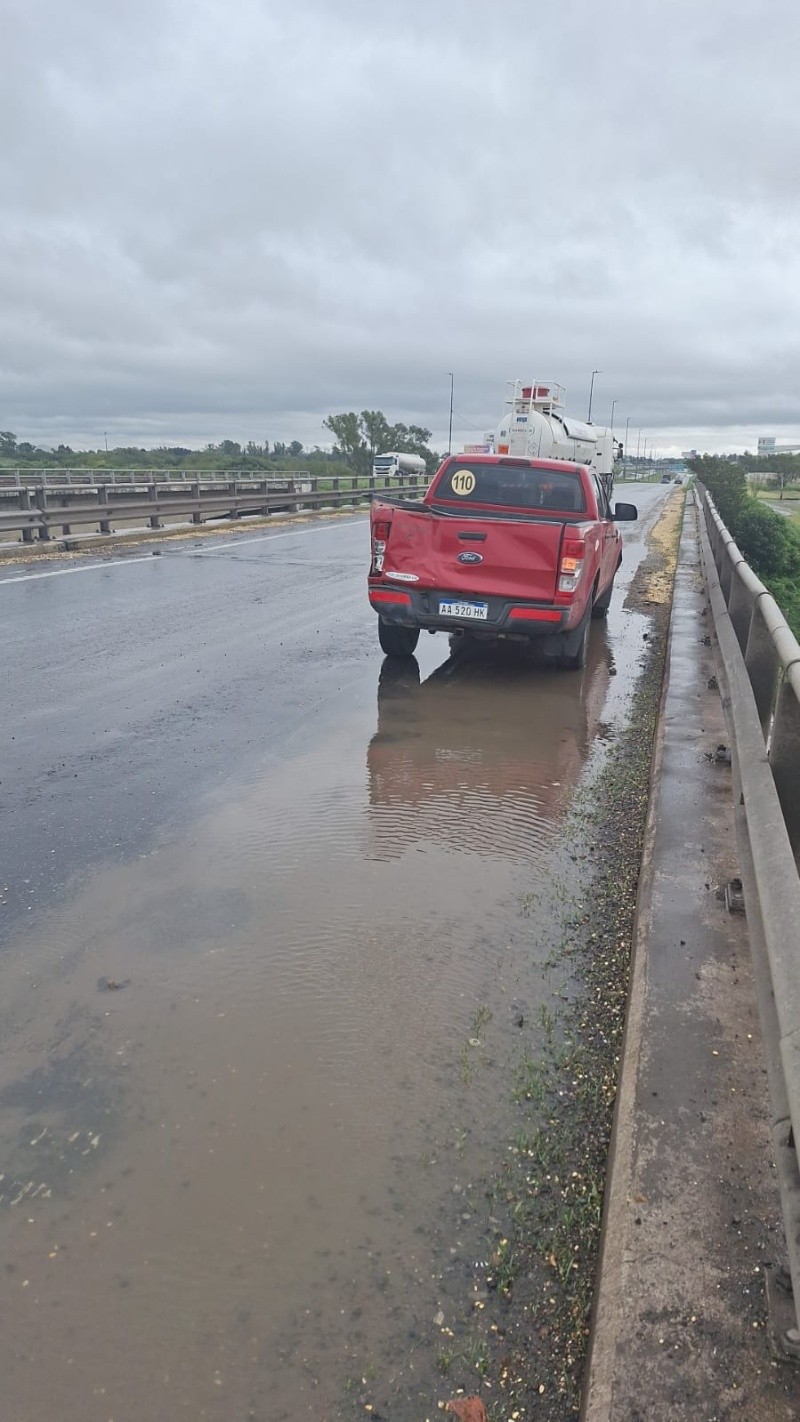 Un fuerte choque en cadena que se registró este lunes por la tarde, en medio de la lluvia, en la autopista Rosario-Buenos Aires dejó varios heridos, a la altura del arroyo Saladillo.