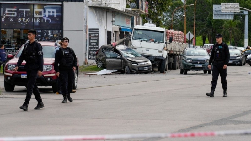 En total, nueve vehículos sufrieron destrozos, además de columnas de alumbrado público. El ingreso por avenida San Martín se encontraba cortado mientras bomberos y policías trabajaban en el lugar.