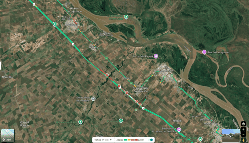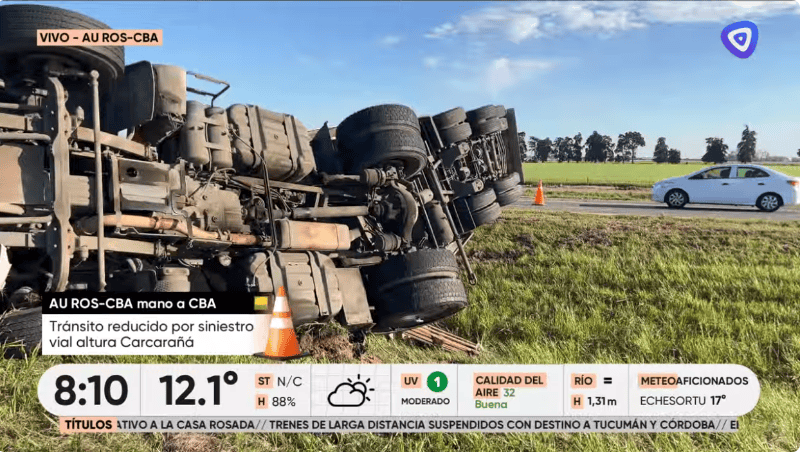 Según las imágenes que compartieron a Rosario3, el vuelco se produjo a pocos metros del puente que dirige hacia la localidad de Carcarañá. El tránsito se encuentra asistido y señalizado para reducir la velocidad en el sector.