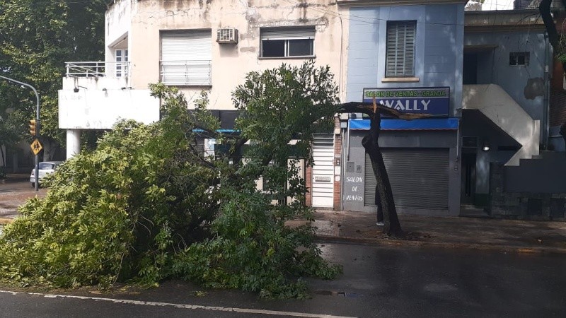 Este lunes, cerca del mediodía y cuando todavía llovía sobre Rosario, un árbol de importante tamaño cayó sobre una parada de colectivo, la vereda y parte de la calzada, en el barrio Parque. “Por suerte no fue en el horario de salida de los chicos de la escuela”, dijo un vecino.