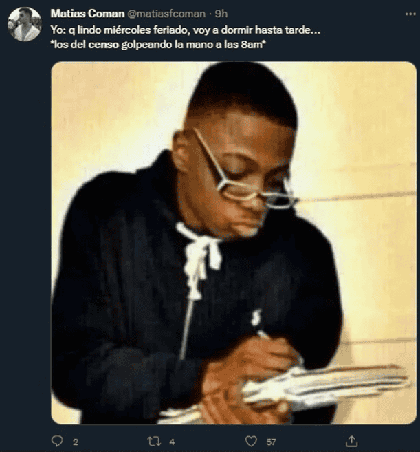 Gracias a las redes sociales y a la ocurrencia de sus usuarios, los memes se han convertido en un clásico de cada evento o situación oportuna, y el Censo 2022 no fue una excepción. En Twitter, muchos compartieron divertidas imágenes inspiradas en el relevamiento que se lleva a cabo este miércoles en toda la Argentina.