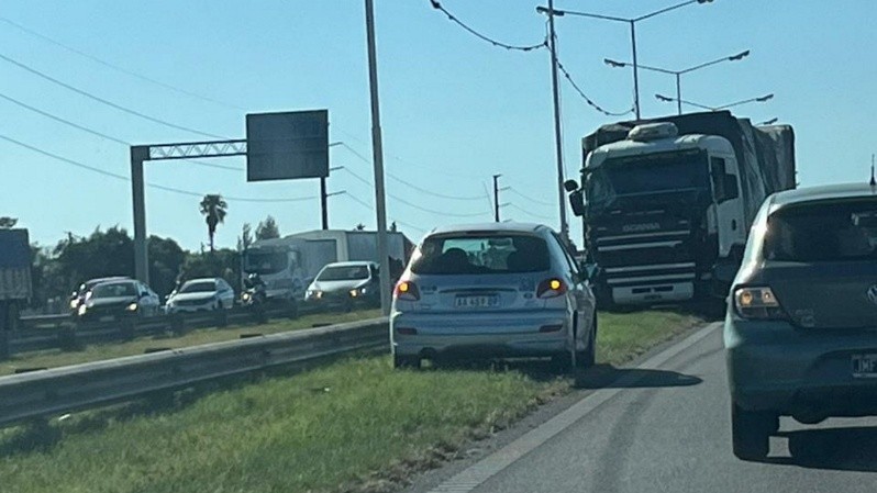 El camión, que circulaba en sentido ascendente, colisionó en parte trasera de colectivo, despistó, chocó la baranda de seguridad y quedó en carril rápido del sentido descendente.