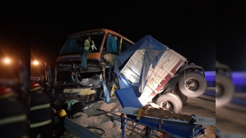 El chofer del colectivo falleció y su compañero está internado con heridas de gravedad, entre ellas algunas fracturas, según se precisó en el móvil de Cada Día (El Tres). En tanto, el conductor del vehículo que recibió el golpe salió ileso, ya que la cabina no sufrió daños.