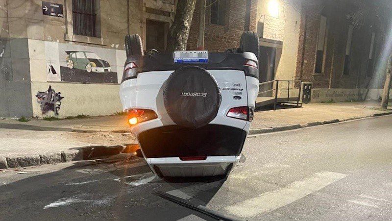 Un auto volcó este lunes muy temprano en la intersección de las calles Ovidio Lagos y Zeballos, tras chocar con otro vehículo. Ninguno de los conductores involucrados sufrió lesiones. En el lugar, se desarrolló un fuerte operativo policial.