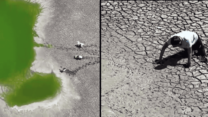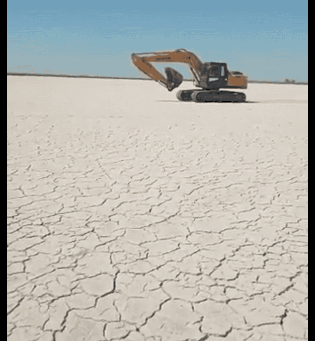 Otro espejo de agua que mutó completamente su fisonomía y ahora es un desierto de terruños agrietados es Laguna Paiva.