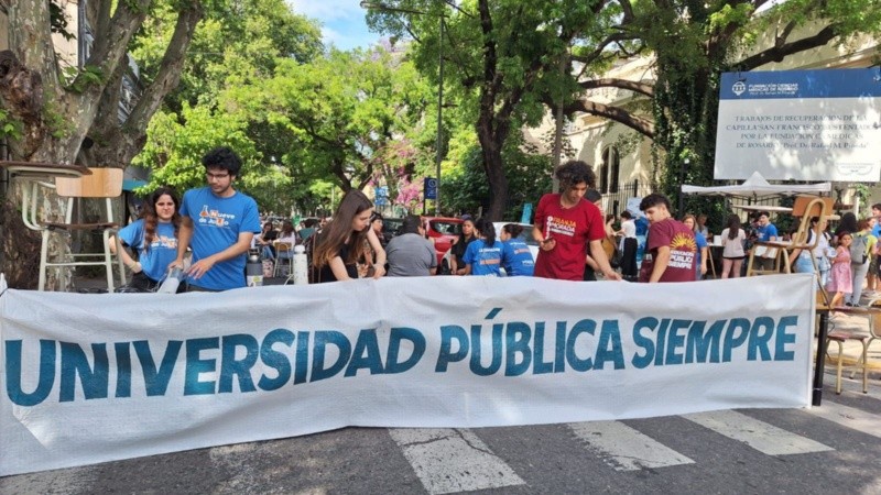 “Hace dos semanas ya tuvimos una actividad de 48 horas de clases públicas y actividades de extensión de la facultad. Hoy repetimos hasta las 19 entendiendo que en la universidad no solo se forman profesionales sino que también se vincula con la sociedad”, explicó en Cada Día (El Tres) Agustín, presidente del Centro de Estudiantes.