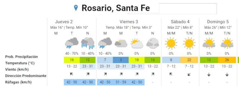La lluvia comenzó el domingo, el lunes hubo un fuerte temporal a la madrugada y las precipitaciones se intensificaron el miércoles y este jueves. Según el pronóstico del Servicio Meteorológico Nacional (SMN), se espera que las precipitaciones continúen de forma aislada hasta las primeras horas del viernes.