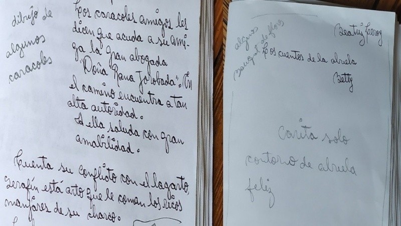 Como si de un cuento de hadas se tratase, los escritos ambulantes que Beatriz escribe desde adolescente en los papeles que encuentra, incluso en el reverso de los números de la Lotería – en plena pandemia, acorralada por la falta de trabajo decidió fotocopiar y venderlos en la calle– fueron reunidos en un libro llamado “Los Cuentos de la abuela Betty”, de la editorial Subez. Este jueves a las 16.45 será presentado en Beat Memo, bulevar Oroño 107 bis. Allí mismo, quienes deseen podrán comprar un ejemplar -se imprimieron 100 ejemplares a 2500 pesos cada uno-.