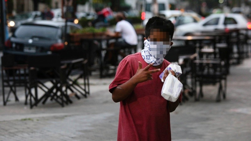Noche del Día de la Madre. El festejo es en la vereda de un bar de Pichincha con los recaudos que el coronavirus impone. La cena se extiende unas tres horas, a lo largo de las cuales la comida rica, el brindis y los regalos chocan con la aparición en 6 oportunidades de niños, jóvenes, familias enteras que se acercan a la mesa a vender pañuelitos, revistas, estatuillas. Otros directamente piden dinero y también aceptan comida.