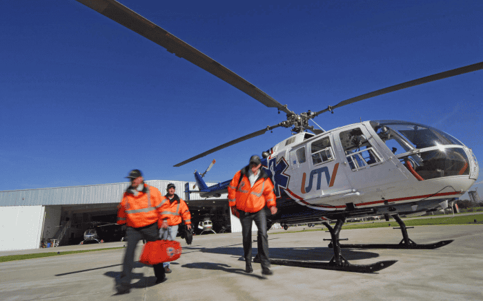 En este caso, como en otros, el traslado del órgano extraído de un donante cadavérico se hizo a través de un helicóptero sanitario de la empresa UTV Aeroemergencias, la única que ofrece este servicio en la región.