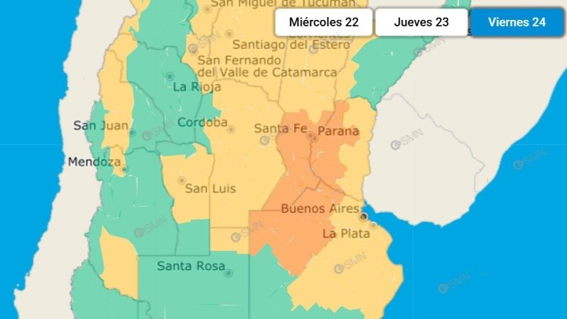 Las lluvias se esperan desde este miércoles o el jueves en Rosario, mientras que para el viernes rige un alerta naranja por tormentas fuertes en todo el sur y centro de Santa Fe, oeste de Entre Ríos, y norte y noroeste de la provincia de Buenos Aires.