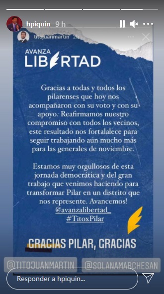 “Gracias a todos los pilarenses, este resultado nos fortalecerá. Estamos orgullosos de esta jornada democrática y del gran trabajo que venimos haciendo”.