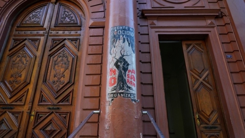 En tanto, un afiche advierte y convoca: “Frente al ecocidio no pasarán, organizate y lucha”.