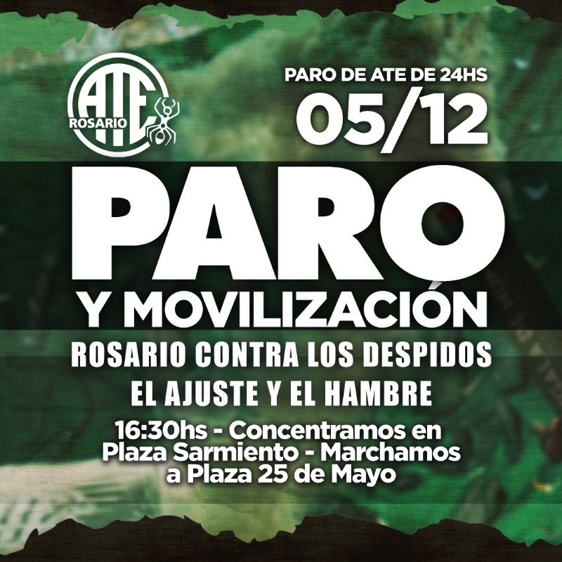 Por la tarde, la jornada de protesta tendrá continuidad con una movilización prevista para las 17 desde la plaza Sarmiento hasta la 25 de Mayo donde se realizará un acto de cierre. A esa movilización se sumará también ATE Rosario.