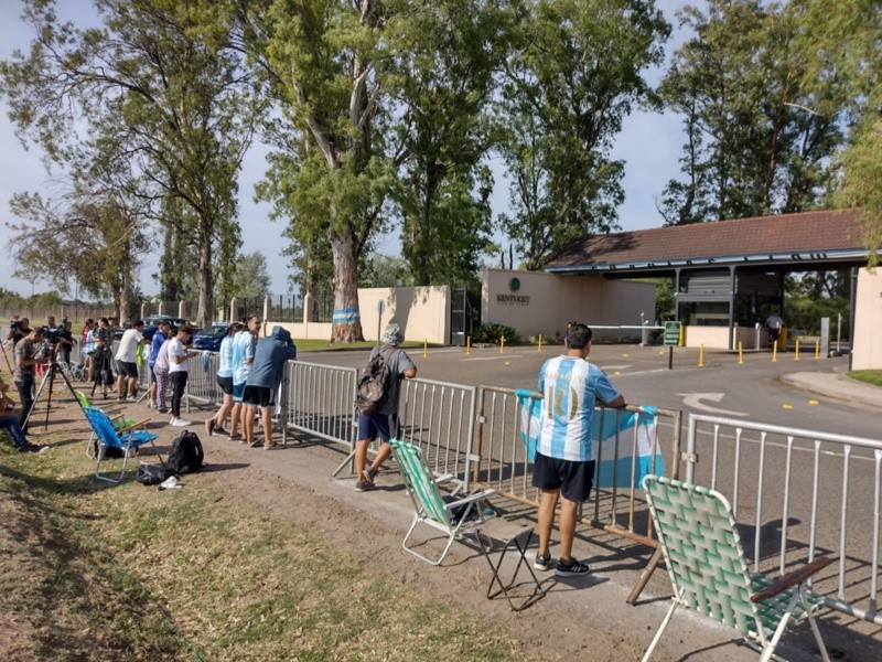 Según describió la periodista Bianca Forconi de Radio 2 desde el lugar, hacia las 8 de la mañana, había apenas unas 20 personas, pero ya preparadas para una larga espera: con reposeras y equipos de mate. Y claro, camisetas para autografiar y el celular con batería suficiente para las fotos.