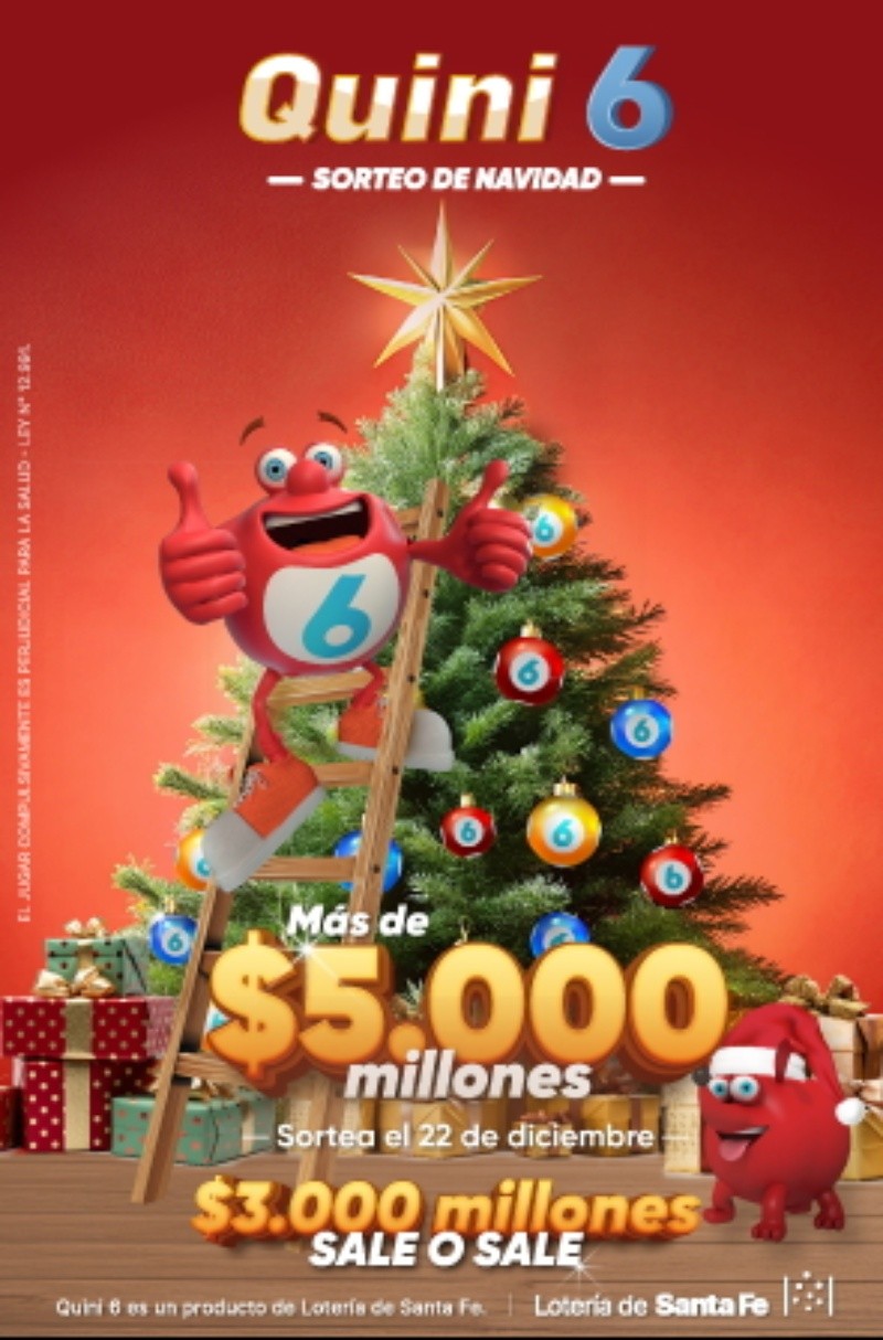 Lotería de Santa Fe cierra el año a lo grande con el sorteo extraordinario de Navidad del Quini 6, el juego federal más vendido del país. El evento será el domingo 22 de diciembre y hay más 5 mil millones de pesos en juego.