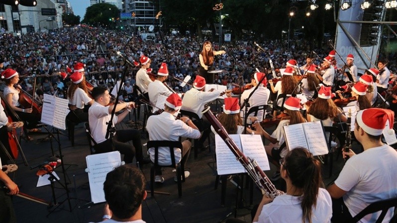 Antes del encendido de las luces tocaron la Orquesta Infanto-juvenil de Ludueña y el Coro del teatro El Círculo.