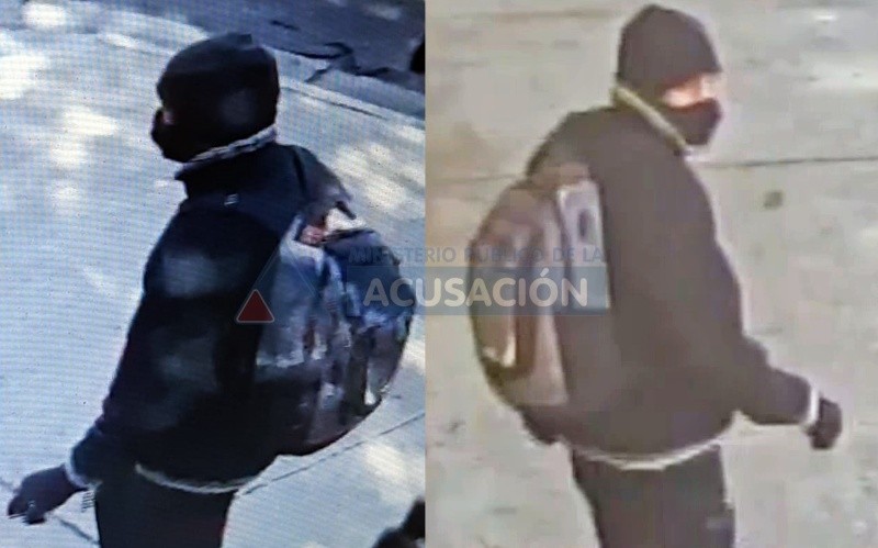 De acuerdo a las imágenes tomadas por las cámaras y a la descripción de la víctima, se trataría de un hombre de contextura física delgada, piel trigueña, ojos rasgados y una estatura aproximada de 1,75 mts. Presentando manos rugosas y que vestía al momento del hecho una mochila gris y negra, zapatillas negras, gorro de lana negro, pantalón cargo oscuro y campera negra.