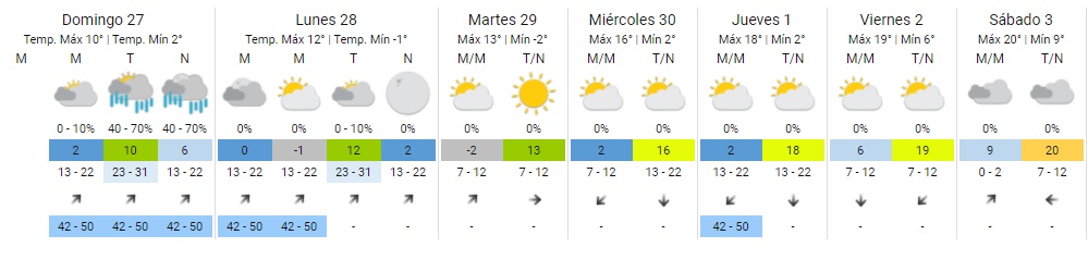 Durante el período, podrán registrarse sensaciones térmicas inferiores a las temperaturas previstas por efecto del viento.