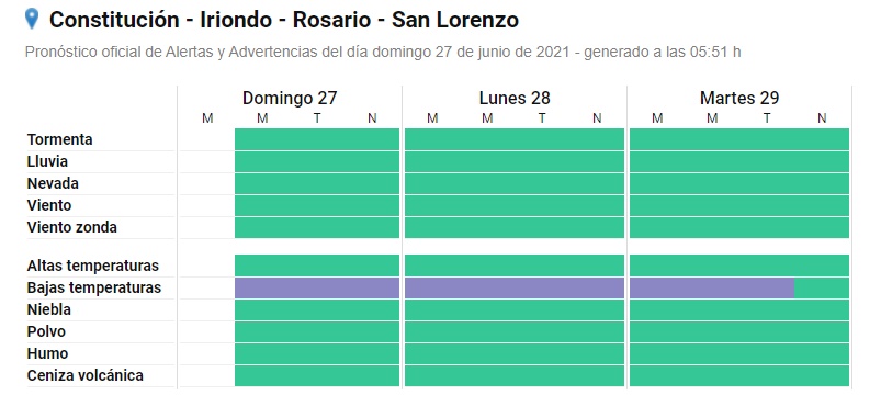 Para lo que resta de la jornada, está vigente el alerta violeta por bajas temperaturas, por debajo de valores normales.
