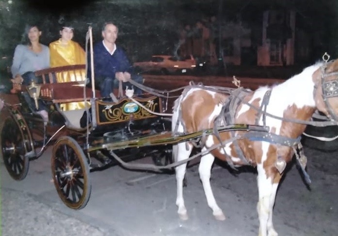 “Cuando lo fabricamos le puse un estéreo con casette, alimentado con una batería de auto. Tiene luces atrás que hacen de giro y tiene luz fija. Los faroles son los que usan en las casas y los uso con una batería”, agregó sobre las “prestaciones” modernas que le coló a su carruaje de principio de siglo y que, según vio en televisión, eran utilizados en el cortejo cuando falleció la reina de Inglaterra.