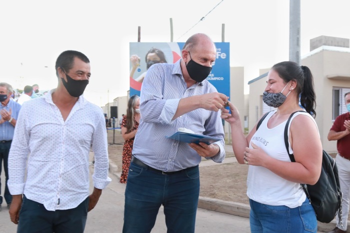 Durante un acto que se llevó a cabo durante la última semana de febrero para entregar las primeras unidades, también en Barrio Olímpico, el gobernador Omar Perotti detalló que las entregas continuarán "hasta el 23 de marzo" para "completar este plan de vivienda".