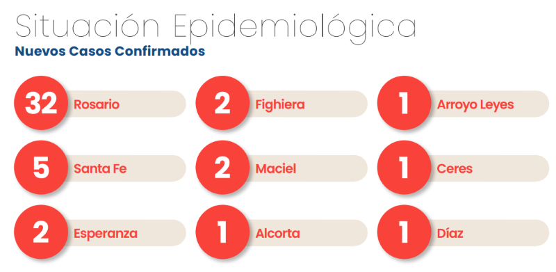En el detalle por localidad, salvo Rosario, ninguna otra ciudad supera los diez contagios.