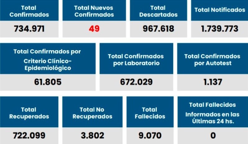 Por su parte, Santa Fe, con 3.802 casos activos, suma 734.971 positivos en estos dos años y 9.070 decesos.