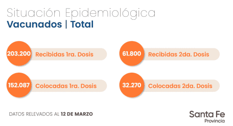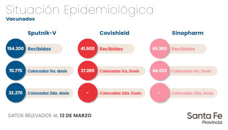 De acuerdo a los datos arrojados por el reporte epidemiológico del viernes, Santa Fe ya colocó 152.087 de las primeras dosis de vacunas contra el coronavirus y 32.270 del segundo. En su mayoría, los sueros colocados son los de Sputnik V, la vacuna rusa que fue la primer. en arribar a la provincia y que se destinó principalmente al personal de salud.