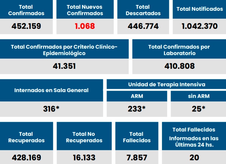 Además en las últimas 24 horas murieron otras 20 personas con covid-19 en toda Santa Fe, 16 de las cuales vivían en la ciudad y la mitad de ellas tenían entre 50 y 60 años, según el detalle oficial.
