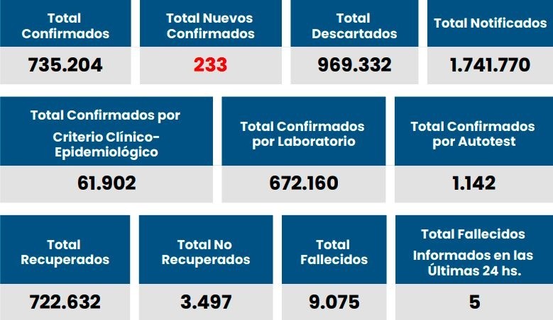 Los 5 fallecidos informados por el Ministerio de Salud de Santa Fe corresponden a la ciudad, que acumula 4.058 muertes desde el inicio de la pandemia, con 9.075 en territorio provincial.