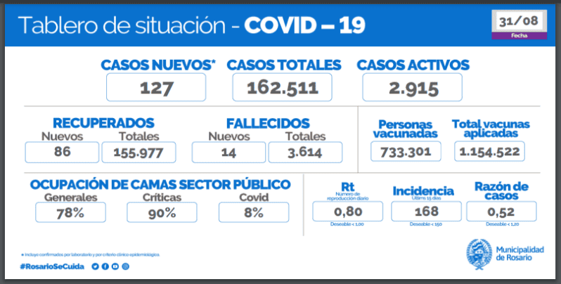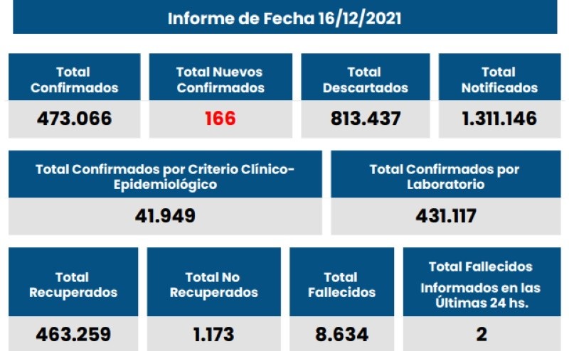 El total de casos confirmados en Santa Fe se elevó entonces a 473.066 y permanecen activos (no recuperados) 1.173.