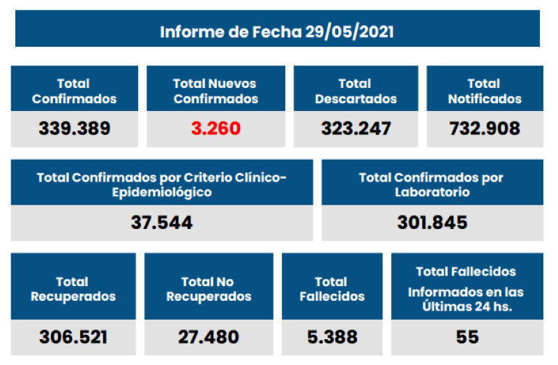 Con esos registros, el total de infectados en la provincia asciende a 339.389 (123.024 de Rosario) y los muertos con covid-19 llegaron a 5.388.