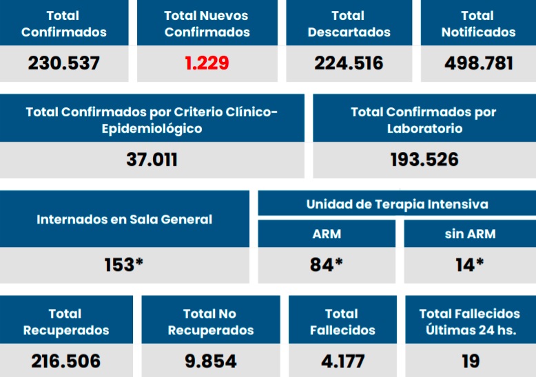 En este nuevo raconto corregido, se agregaron 19 personas con covid-19 fallecidas en todo el territorio provincial, que ya suma 4.177.