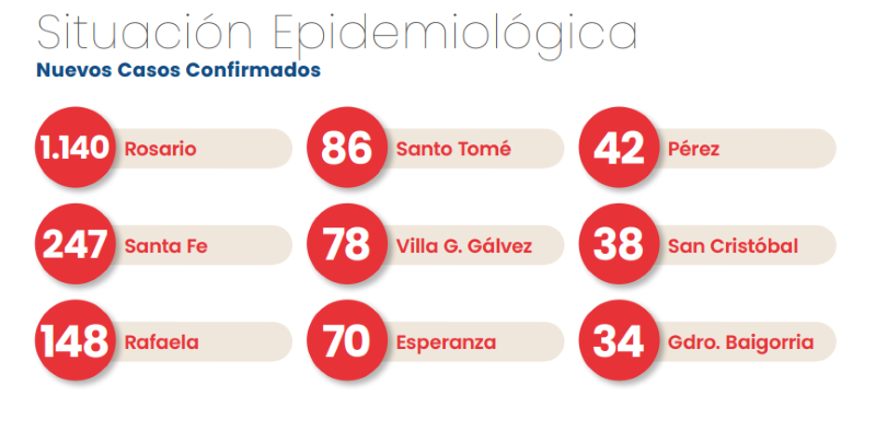 En el detalle por localidades, Rosario concentra la mayoría de los casos y bastante por detrás aparecen la capital provincial y Rafaela.