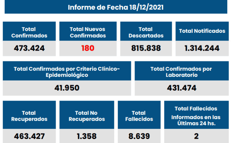 El Ministerio de Salud informó además que hubo 180 contagios a nivel provincial y el total de infectados ascendió a 473.424.