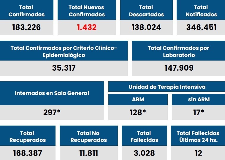 Así lo detalla el parte del Ministerio de Salud provincial, reporta además la muerte de otras 12 personas con covid-19, 5 de ellas pacientes rosarinos.