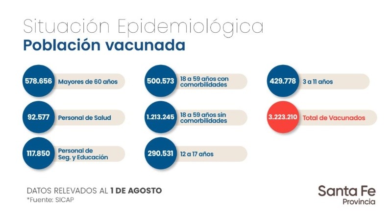 Los casos positivos registrados hasta ahora son 753.870 en la provincia y 274.475 en Rosario, de acuerdo a los números oficiales.