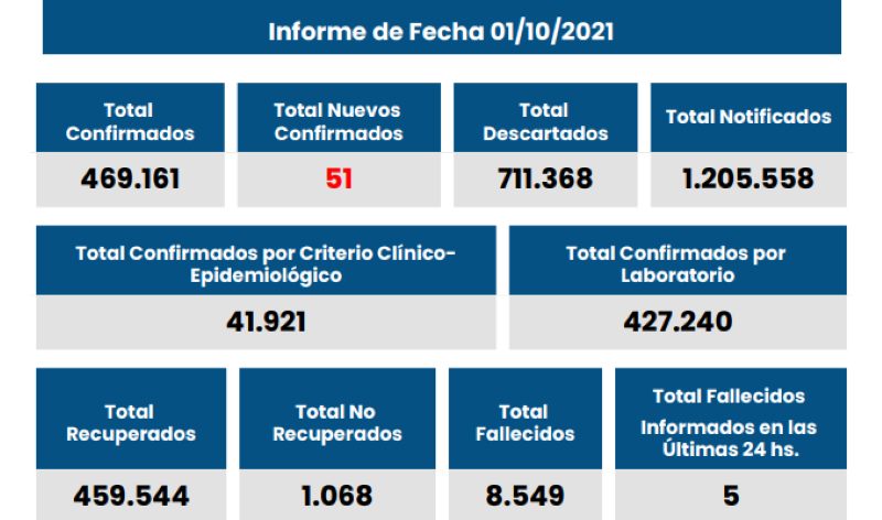 Al margen de la comparación por localidades, el Ministerio de Salud informó 51 casos en Santa Fe y el total de positivos desde el inicio de la pandemia llegó a 469.161 en el distrito.