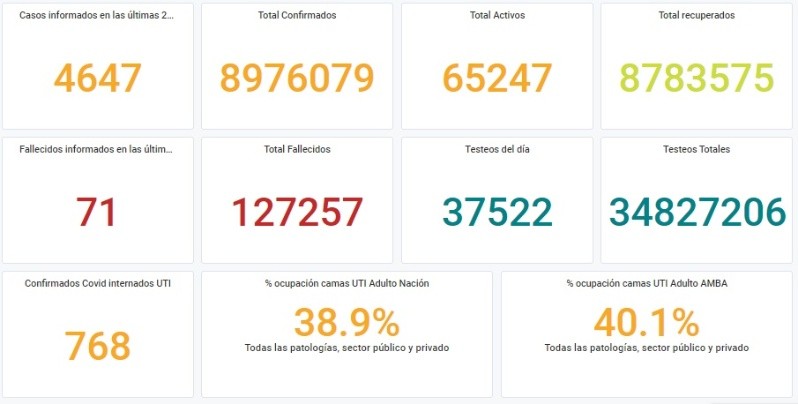 De esta manera, ya suman 127.257 los fallecidos registrados oficialmente a nivel nacional y 8.976.079 los contagiados desde el inicio de la pandemia.