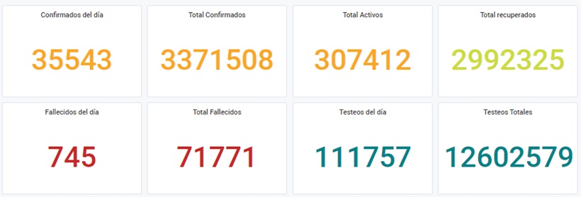 En tanto, los contagios acumulan 3.371.508 de los cuales 307.412 permanecen activos en todo el territorio nacional.