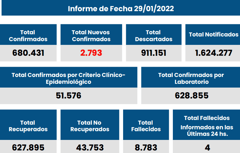 A nivel provincial, los contagios fueron 2.793 y el total ascendió a 680.431. Los no recuperados son 43.753.