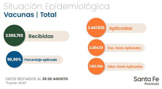 En lo que respecta a la campaña de vacunación, desde el Ministerio de Salud provincial señalaron que este jueves se aplicaron 45.258 dosis que elevaron la cantidad de vacunas aplicadas a 3.447.835 (1.163.704 corresponde a segundas dosis).
