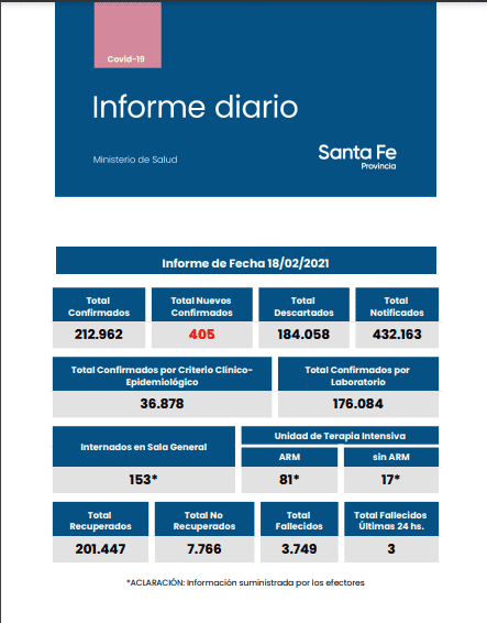El Ministerio de Salud de Santa Fe confirmó este jueves 405 nuevos casos de coronavirus en todo el territorio provincial. En Rosario, la cifra fue de 148 contagios y el total de personas que contrajeron la enfermedad desde el inicio de la pandemia es de 79.591.