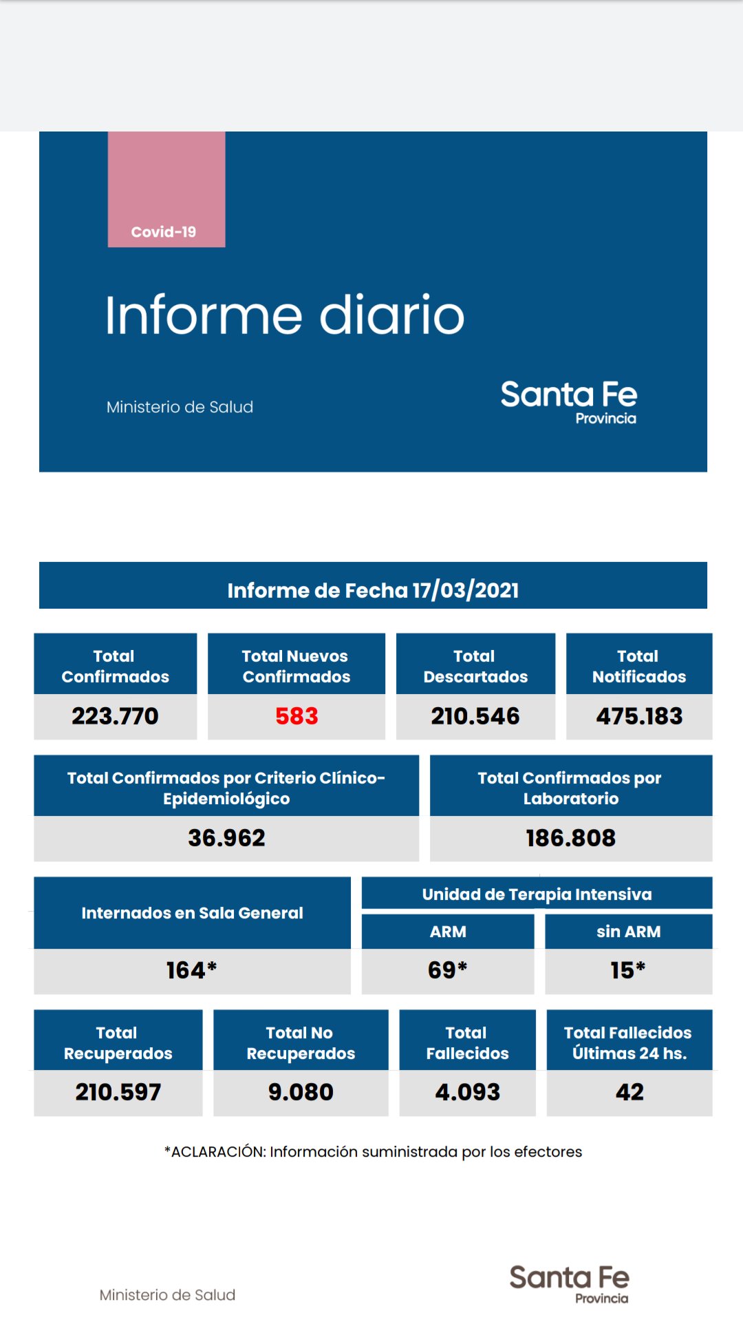 Por su parte, la ciudad de Santa Fe reportó 50 contagios en las últimas 24 horas, llegando a un total de 28.706.