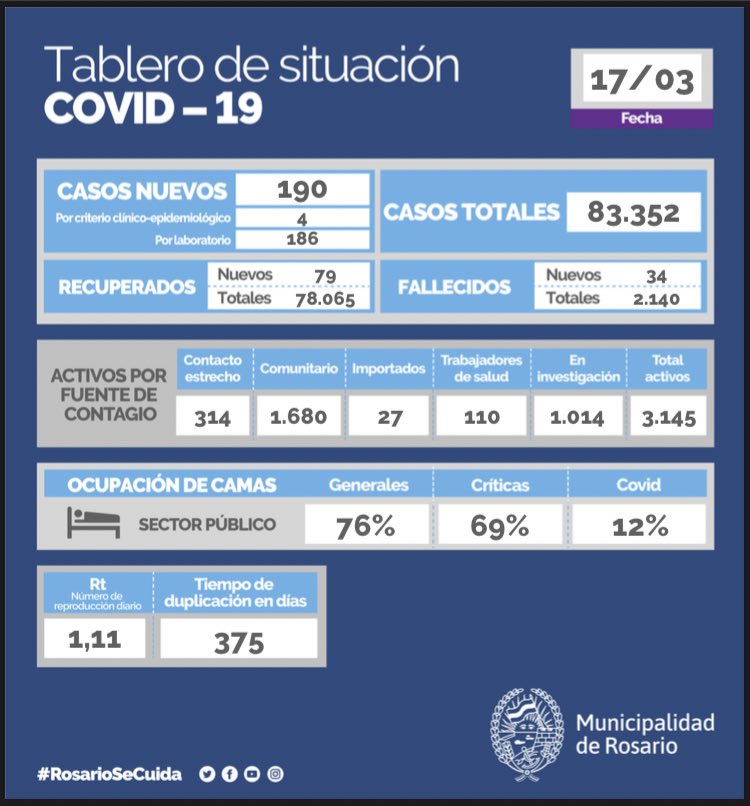 En cuanto a los fallecidos este miércoles, la ciudad de Rosario confirmó 34 nuevas muertes. En la provincia, el número llegó a 42.