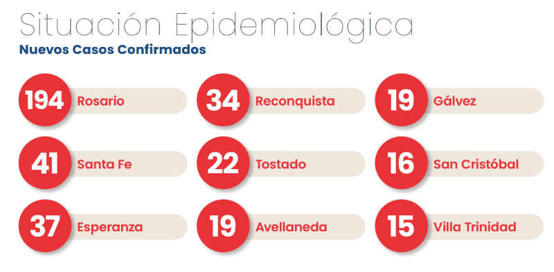 Rosario sumó este sábado 194 nuevos casos de coronavirus de los 554 registrados en toda la provincia, según informó el Ministerio de Salud de Santa Fe.