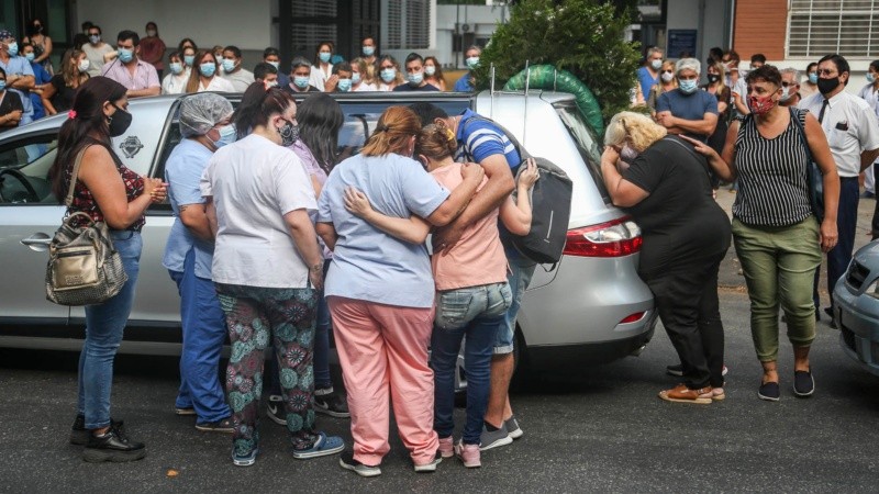 El cortejo funebre arribó unos minutos antes al centro de salud de Avellaneda y 9 de Julio, especializado en atender la pandemia en Rosario, y sus colegas le dieron un último adiós, con lágrimas que asomaban debajo de las máscaras de protección y los barbijos.