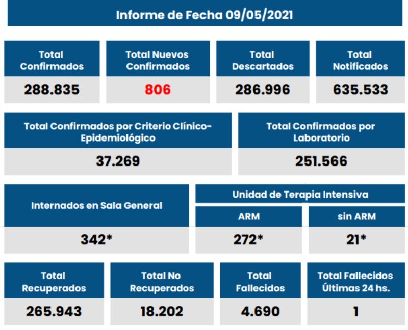 De acuerdo al informe, actualmente hay 342 pacientes internados en sala general y 293 en unidades de terapia intensiva, de los cuales 272 se encuentran con asistencia mecánica respiratoria.